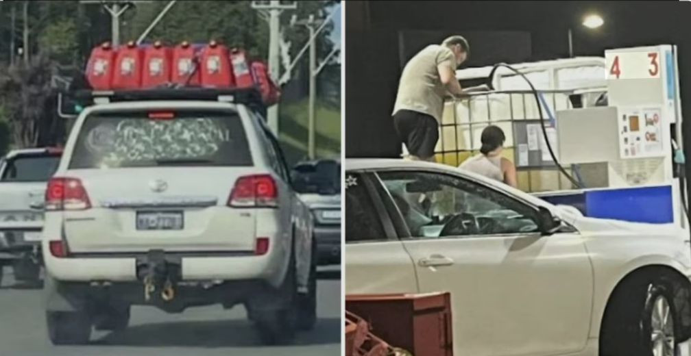 Panic buying has seen people fill up anything with fuel.