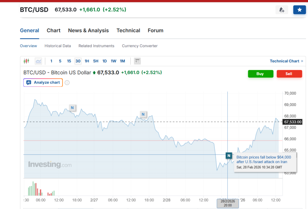 For now, markets are reacting to risk, not catastrophe. Oil has risen, gold has strengthened, and Bitcoin has displayed volatility consistent with a risk-off environment. The global system remains intact.