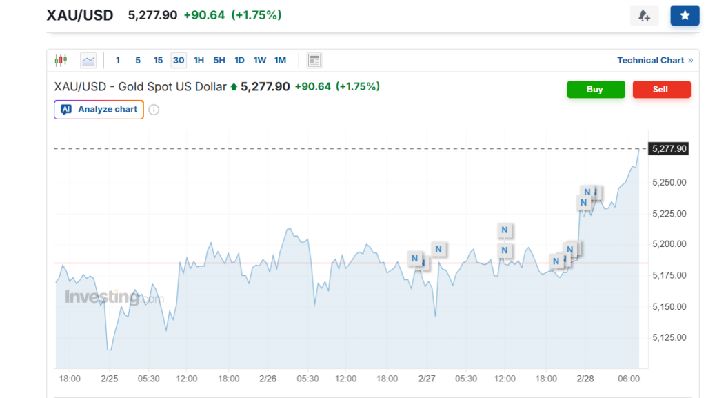 At the same time, gold behaved exactly as financial history would predict. Investors seeking shelter from geopolitical uncertainty shifted capital into hard assets.